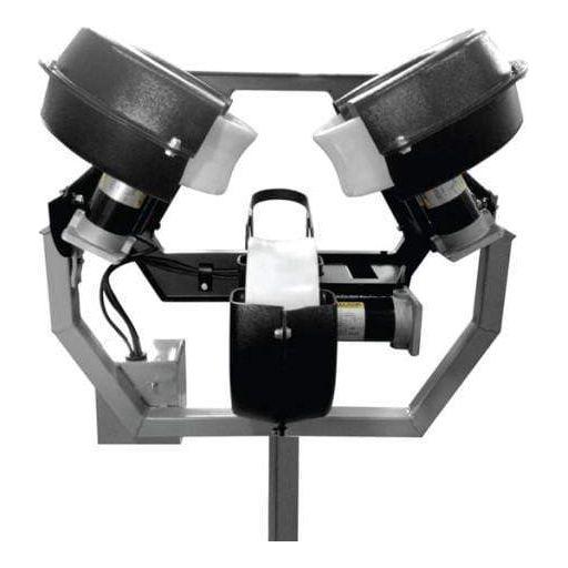 Exceptional Training Machine Quality - The Total Attack platform has a 16-gauge diamond plate, non-slip surface for sure-footing, and safety during use. The frame of the Total Attack is powder-coated, rust-resistant steel tubing for extreme durability. The extra-wide base of the Total Attack machine assures real stability. As the throwing head is raised, it moves towards the center of gravity, further ensuring stability. Two powerful variable speed motors directly drive indestructible 4″ wide ball throwing wheels. Rapid recovery provides rapid repetition, no waiting for air-powered launch system to recover.